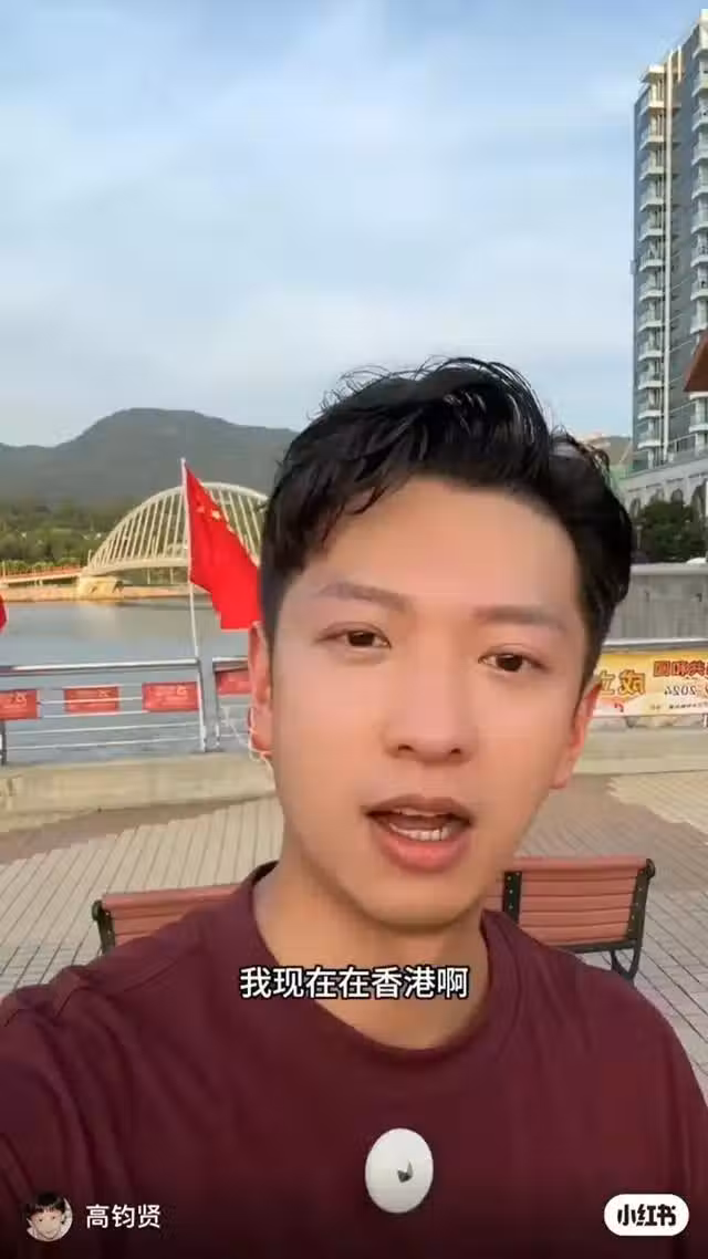從高鈞賢分享的視頻中可以看到,他們一家三口穿著紅色的服裝,非常應節。在視頻中,高鈞賢還未開口介紹完他與父母的計劃,高爸爸就對著鏡頭幽默地打招呼說:「Hello,慶祝國慶75周年。」