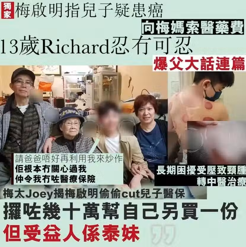 梅啟明曾自曝患癌,又爆料兒子也疑似癌症,多次尋求母親的幫助。