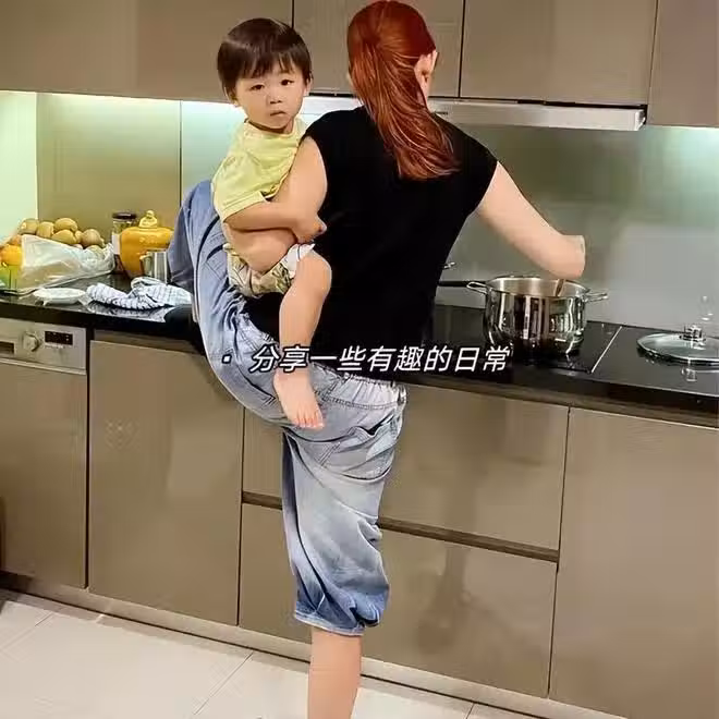 在一個綜藝節目中,蔡少芬還向觀眾展示她是如何一心多用的,一手抱娃,一手做飯,一隻腳居然都能踩到廚房面板上,一方面是比較省力,另一方面也是為了保證小孩別掉下來,很辛苦。