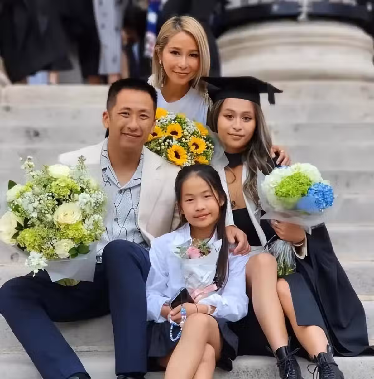 此前洗米華的大女兒國外名校畢業,全家難得一起捧鮮花出鏡合影。
