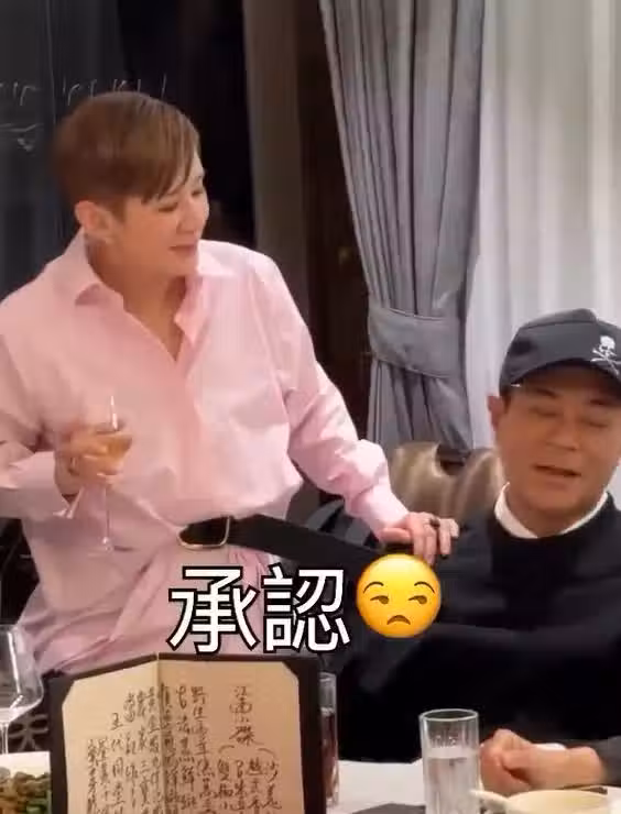 她舉著酒杯來到古天樂的身邊,調侃道:「女朋友,這件事承不承認?」作為壽星公的古天樂頓時顯得很尷尬,看向身邊的陳可辛,似乎得到陳可辛的應允,古天樂這才連忙點頭說:「承認。