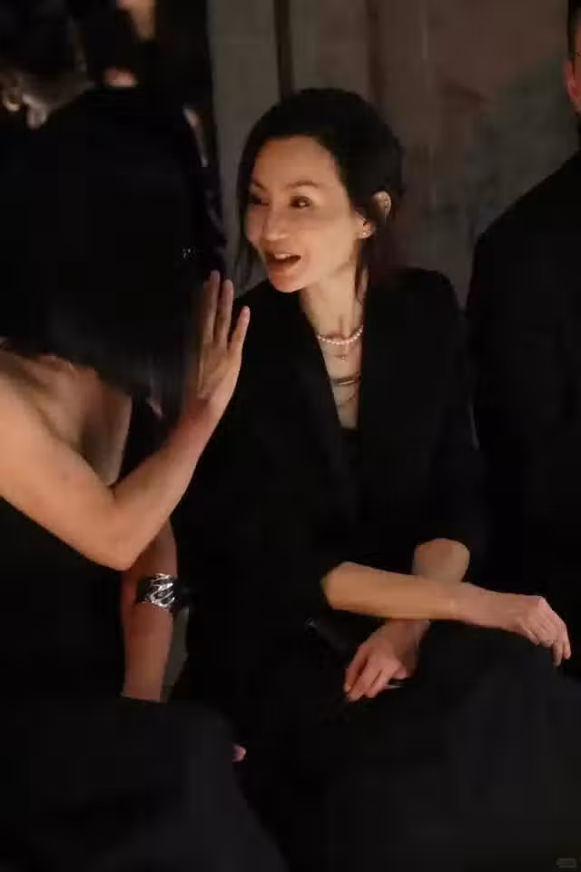 張曼玉一進場就吸引了在場人士的目光,充滿了巨星的風采。她被安排坐在45歲的秦嵐及31歲的鐘楚曦之間觀看時裝秀,還一邊看秀一邊與身旁好友私下交談。