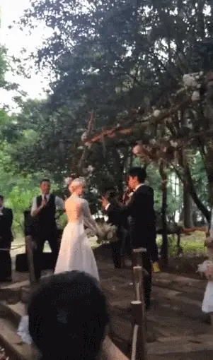 親友合照時,撒貝寧和妻子李白,渾然忘我,直接下了台,牽手漫步。