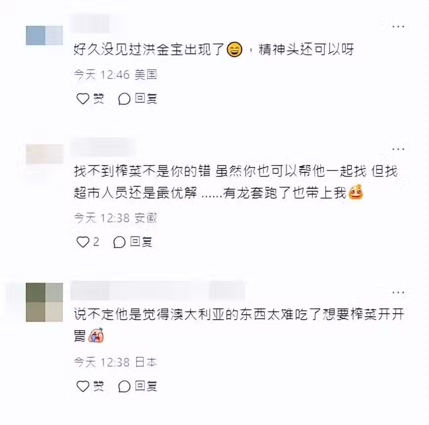 樓主繼續說,在他正要離開的時候,洪金寶竟然問他:「榨菜放在哪裡?」樓主隨即尷尬地回答洪金寶說,自己只是貨車司機,來送貨的,並不是超市員工,於是幫忙找來相關員工協助洪金寶。