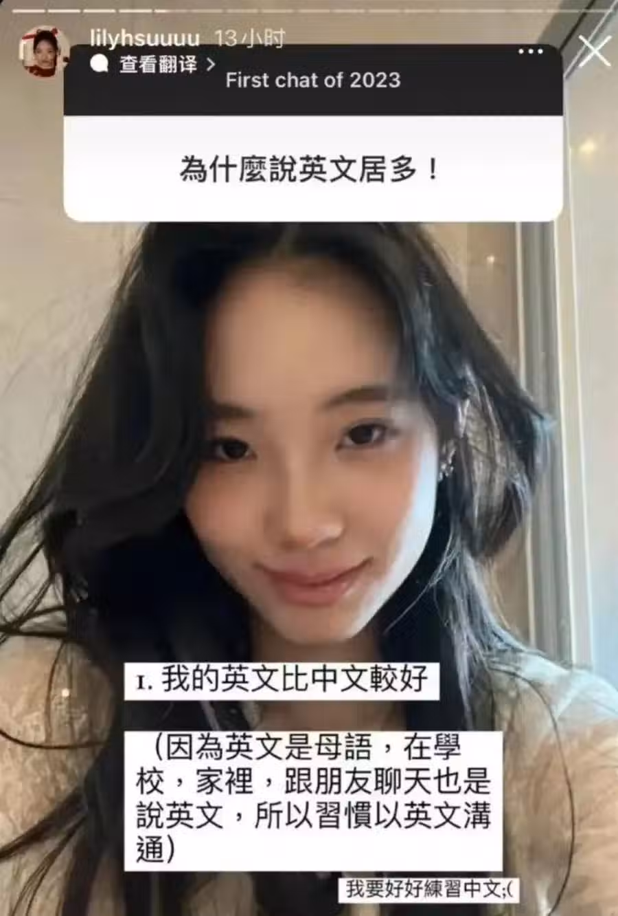 2023年,許韶恩在她的社交平台上回答了一些網友的提問,有一個網友詢問她為何總說英語,社交平台上的發文也基本都是用英語。
