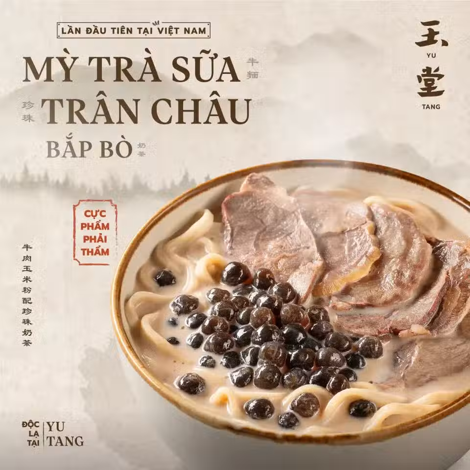 越南一間手搖飲料店推出超獵奇的「珍奶牛肉麵」。(圖/翻攝自FB@yutangvn)