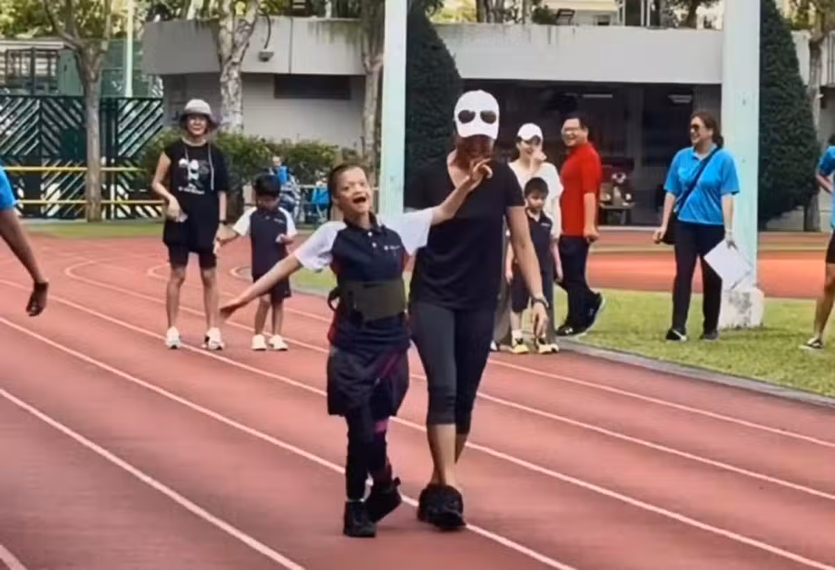 視頻中,Isabella在鍾麗淇的攙扶下,主動從輪椅上站起來,同時還丟棄了助行架。在學校的操場上,大步大步的走起來,臉上也是露出了燦爛的笑容。