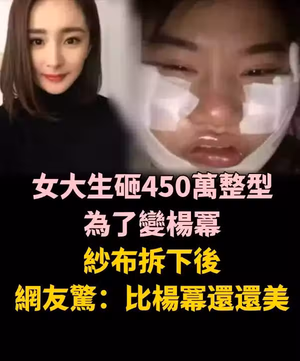 女大生「砸450萬整型」為了變楊冪, 紗布拆下後,網友驚:比楊冪還還美