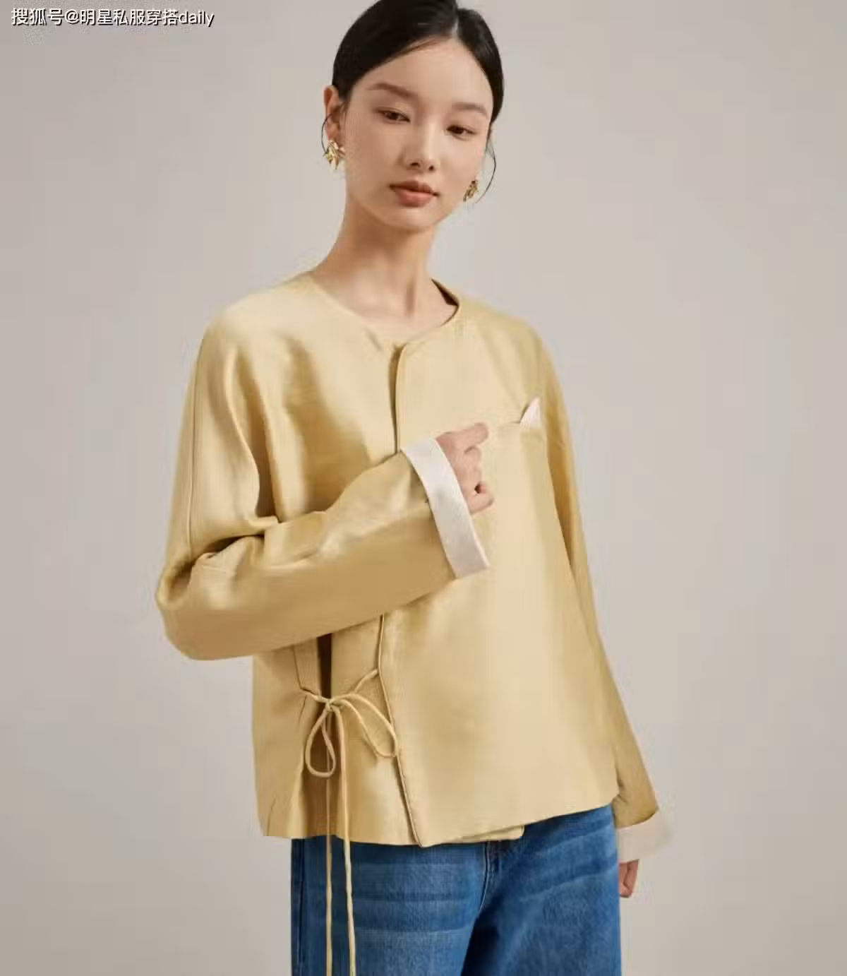建議學趙露思穿「斜襟系帶上衣」,優雅的溫柔風穿搭,,太有女人味