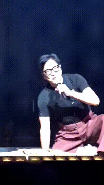 71歲的鐘鎮濤曾是一代的偶像,他保養得意,幾十年維持健壯的身材,看上去比實際年齡要小許多,可能也是強壯身體素質帶來的自信,鍾鎮濤在台上大開大合,屢次摔倒。