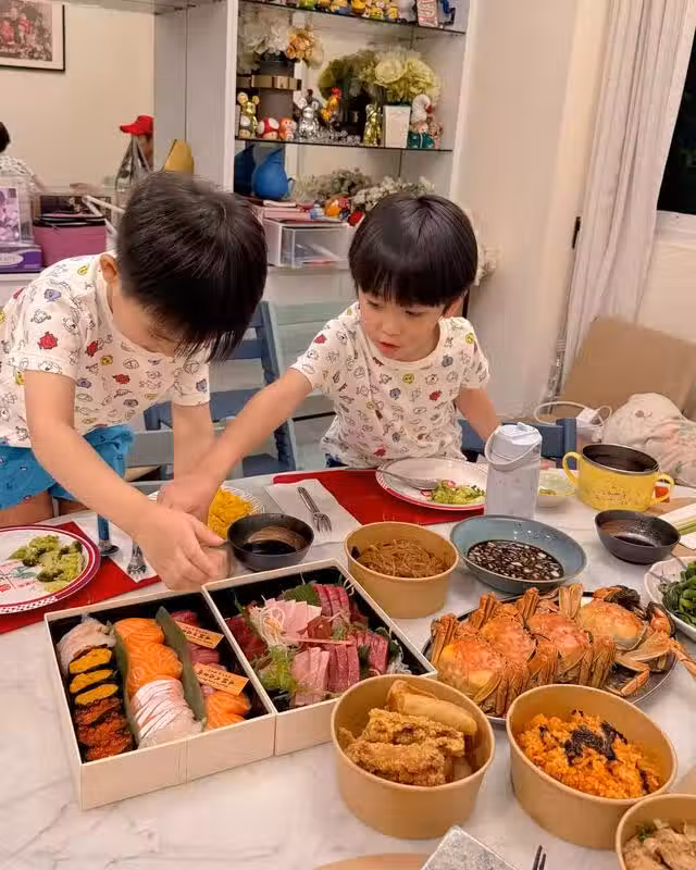 10月23日,鄭嘉穎的太太陳凱琳分享為黃智賢慶生的照片,他們一家五口在家中為黃智賢賀壽,準備了豐盛的海鮮及日本料理大餐。