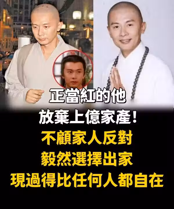 正當紅的他放棄上億家產!不顧家人反對「毅然選擇出家」 現過得比任何人都自在