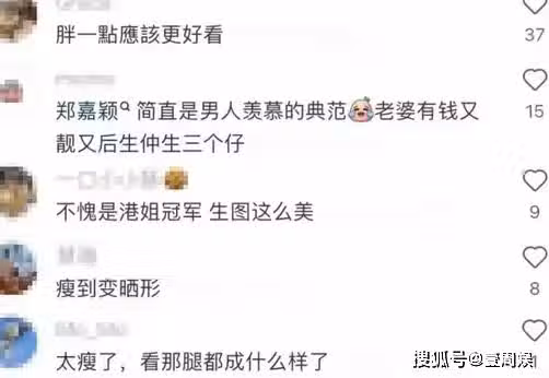 網友紛紛留言:「胖一點應該更好看。鄭嘉穎簡直是男人羨慕的典範,老婆又靚又年輕還生三個崽。不愧是港姐冠軍,生圖這麼美。瘦到變形了。太瘦了,看那腿都成什麼樣了?」