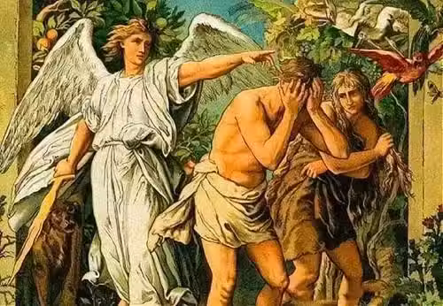 夏娃和亞當被安置在富饒的伊甸園中,上帝告誡他們園中果實皆可嘗,唯獨智慧樹的果實是禁忌。上帝退場之後,夏娃和亞當難耐好奇心,偷食了禁果。智慧的果實賦予了他們思考與智慧的能力。