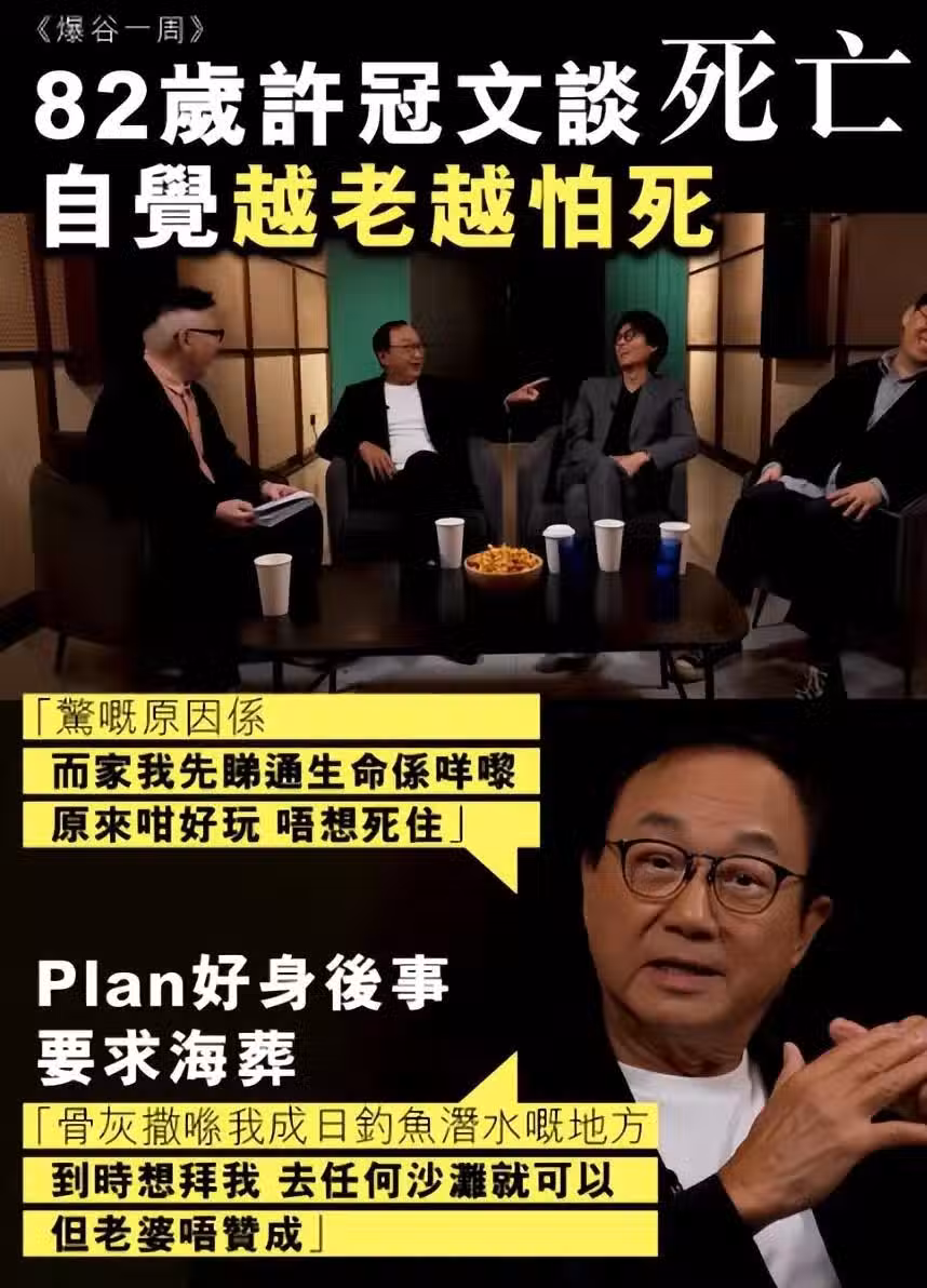 82歲許冠文已計劃後事,與三弟一樣海葬但很怕死亡,太太也不同意