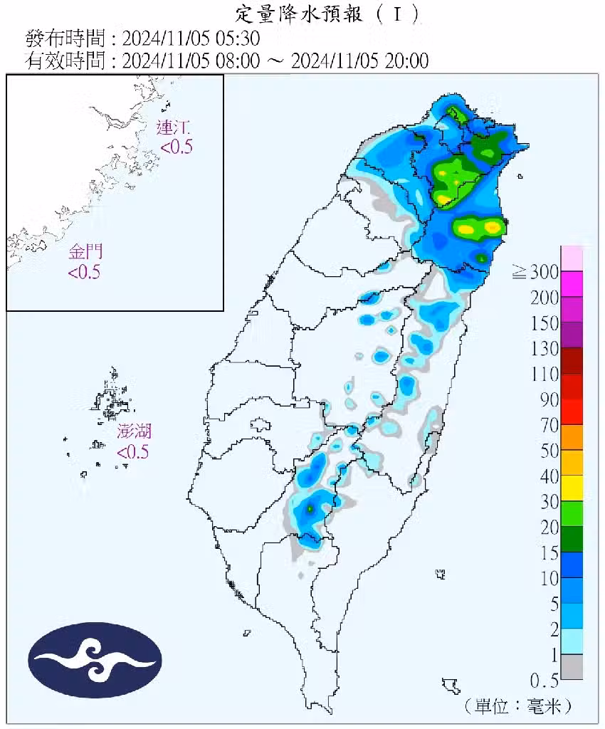 據《ETtoday新聞雲》報導,今日東北季風增強下,基隆北海岸、台北山區、宜蘭等迎風面的局部大雨可能性提高,午後則為中南部山區零星短暫雨勢。