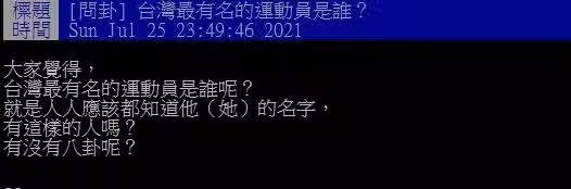 奧運賽事熱烈開打中,中華隊連連傳捷報,創下史上第二高,尤其「麟洋配」拿下羽球男雙金牌、郭婞淳拿下銅牌,還有射擊項目李孟遠首次拿下獎牌,都讓大家相當開心,其中有人在網絡論壇「批踢踢」發問:「大家覺得,台灣最有名的運動員是誰呢?