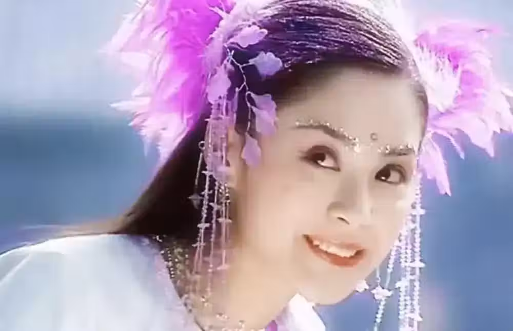 在與張衛健合作的港劇《齊天大聖孫悟空》里,阿嬌飾演的紫薇仙子,頭上戴著紫色的羽毛和流蘇。水晶的妝容清透漂亮,一顰一笑就是小仙女本人。《雪山飛狐》飾演的程靈素,被稱為史上最美的版本,亂糟糟的髮型也難掩清秀。還有《古劍奇譚》的巽芳,戲份不多,髮型也很簡單,就是中分散發加個簡單髮飾,但當年真的驚艷了不少人。和喬振宇這一對cp的顏值都很高,特別般配。