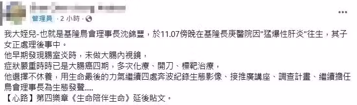 台灣大咖驚傳過世!家屬淚證實「猛爆性肝炎過世」!悲曝「早就有癌症」