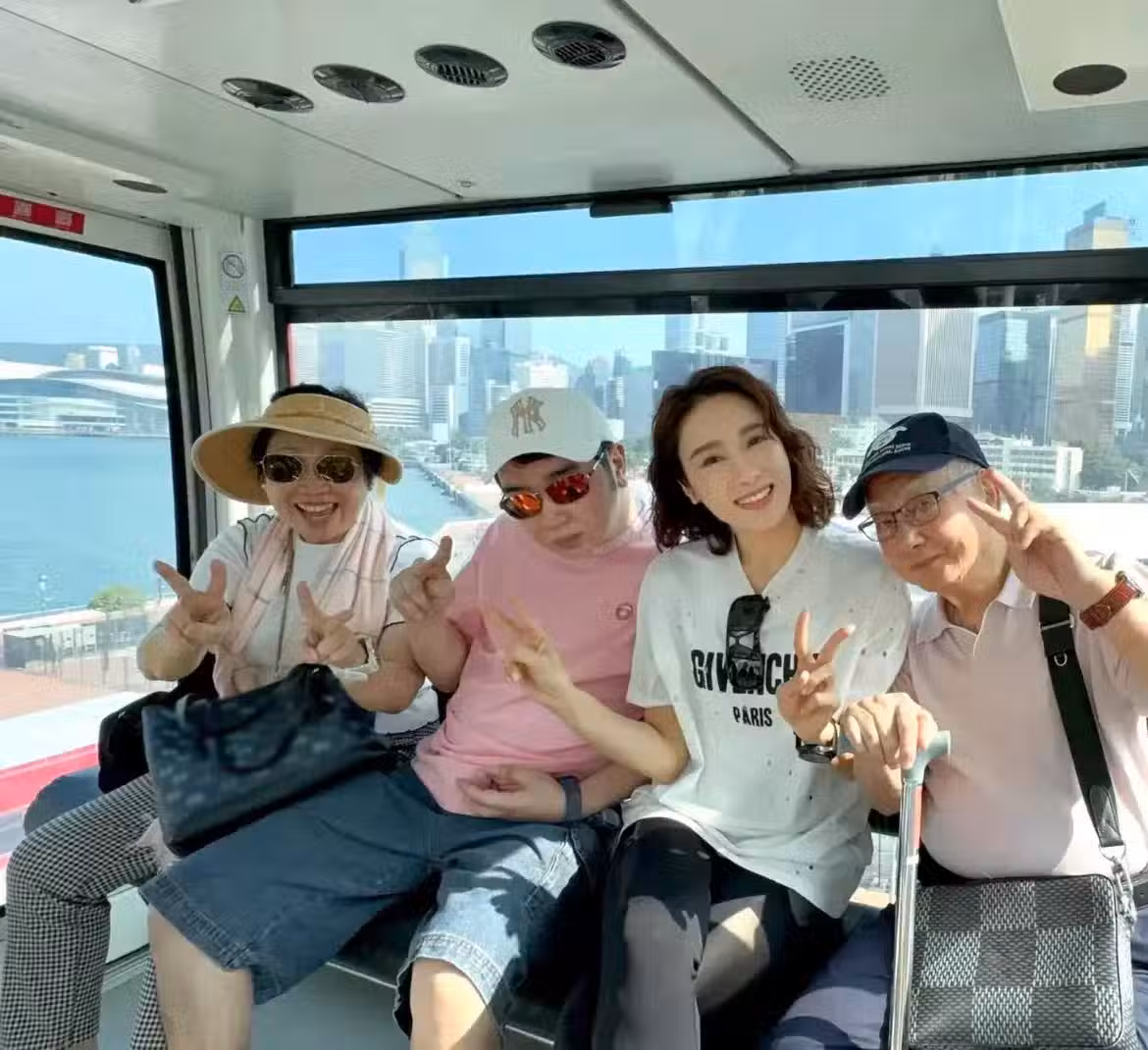 黎姿帶父母及弟弟出遊,一家四口搭摩天輪幸福歡樂,黎嬰狀態不錯