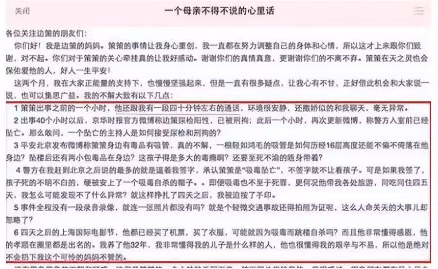 於朦朧之死頭七「真相大白」母親公布兒子真實死因「在場人或需擔責」全網轟動