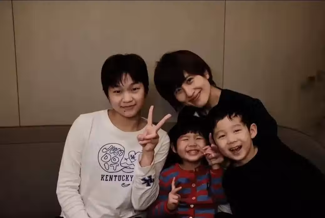 全紅嬋曬和許昕一家合影,全妹靠著妹妹好寵溺 ,哥哥歡脫可愛像爸爸