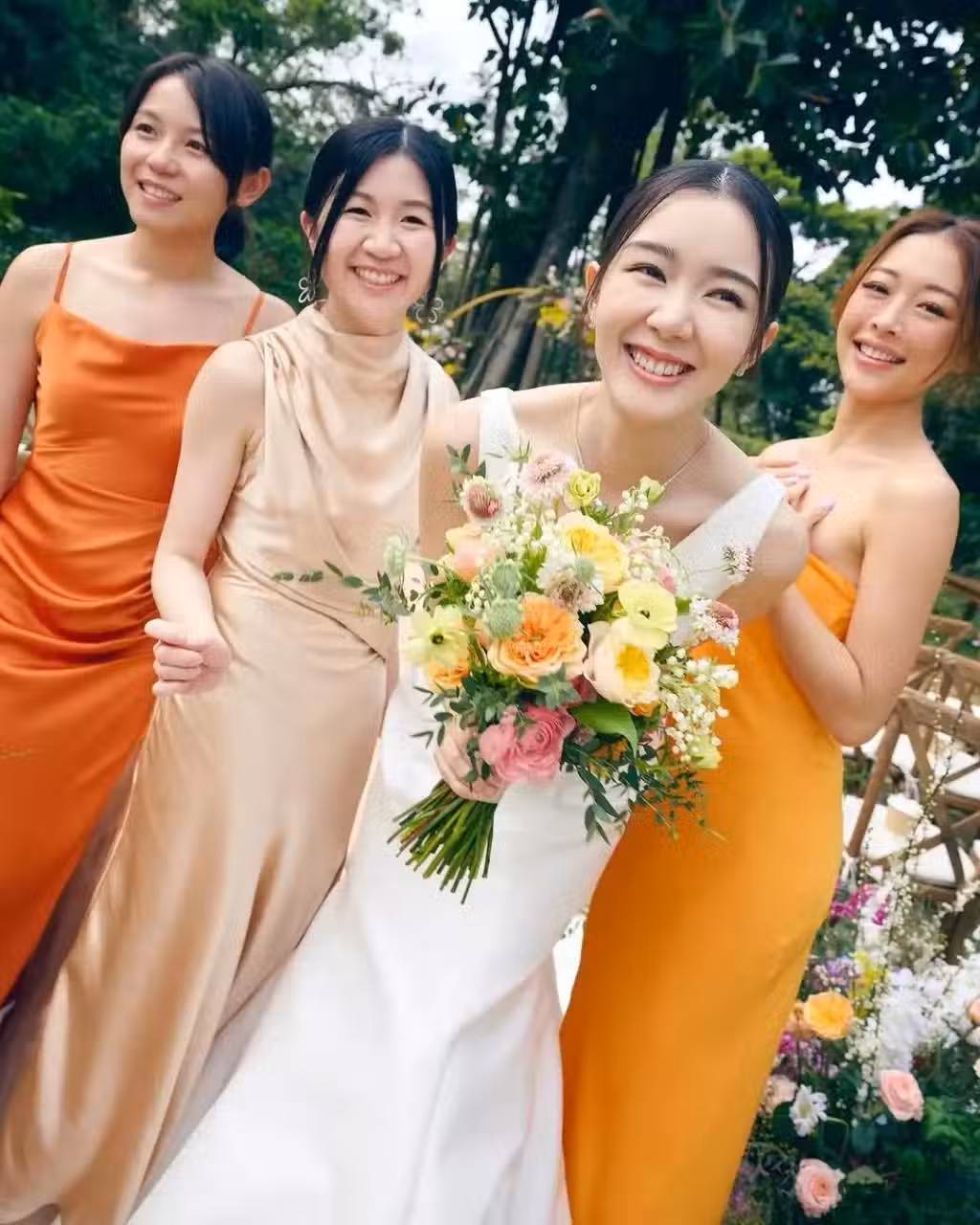 港姐麥明詩新婚半年再曬婚禮照!死對頭當伴娘低胸鬥豔,關係挑明