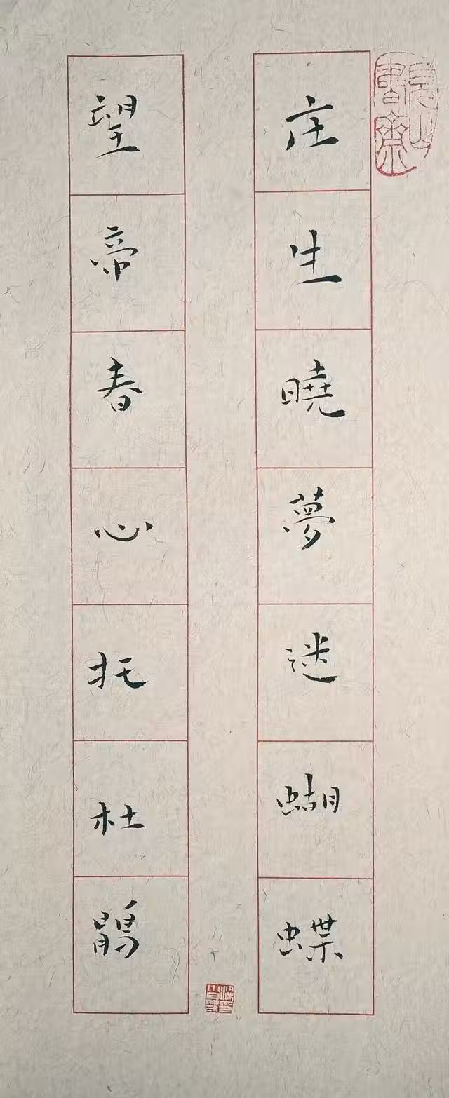 只要有條件,她幾乎都會練習寫字,即使出外也將筆墨紙硯裝在行囊,清晨一件一件取出,整齊地擺放在旅館的木桌上。