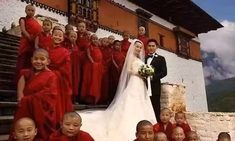 梁朝偉和劉嘉玲愛情長跑20年,終於在2008年前往不丹舉行浪漫婚禮。(圖/翻攝自微博)