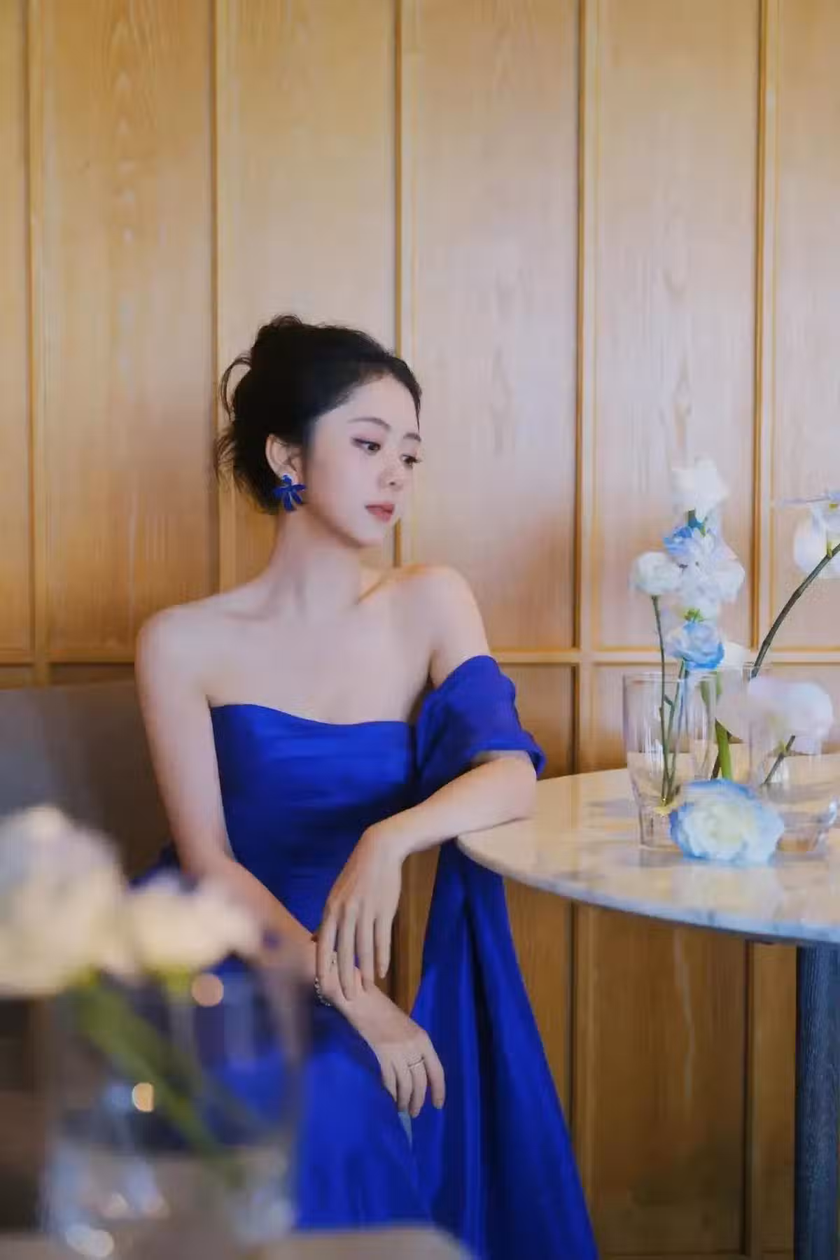 譚松韻,藍裙甜美穿搭,,可愛的小腳丫!