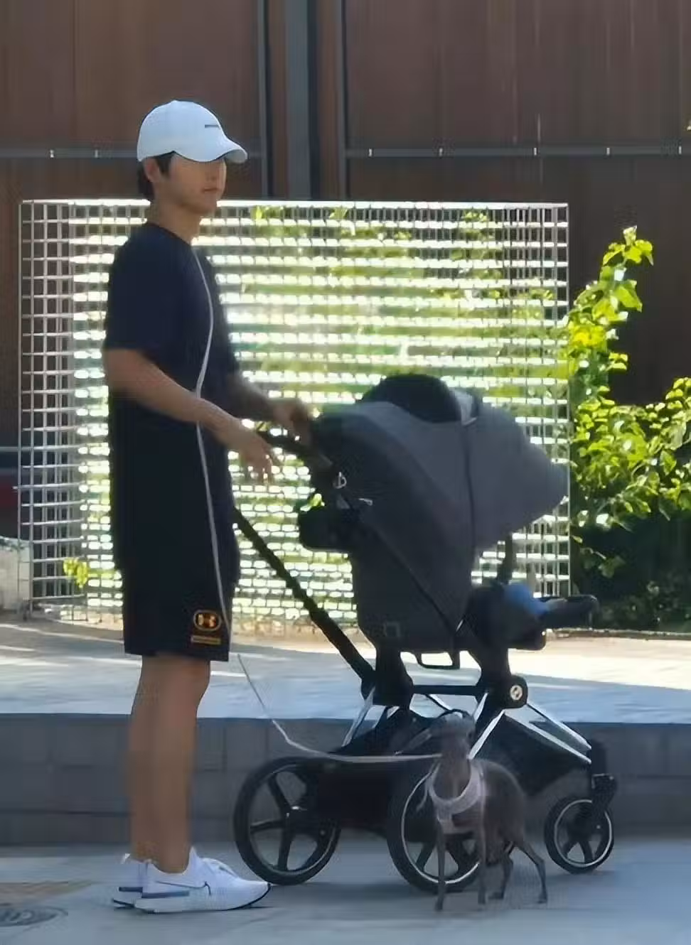宋仲基曾多次被偶遇帶娃,39歲的他外形年輕,笑臉迎人。