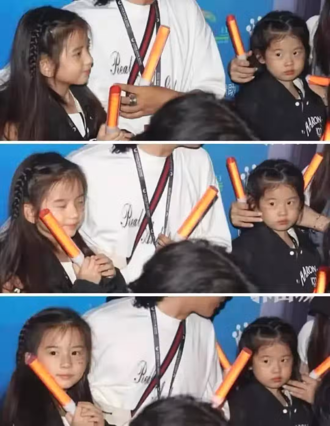 話說倆女兒的辨識度都挺高的呀,姐妹倆一個像媽媽一個像爸爸,都非常漂亮可愛。