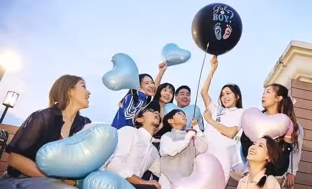 派對中賴慰玲和好友們玩的很開心,在揭曉孩子性別的那個環節,好友們都紛紛用手中的粉色或者藍色氣球來表達自己的看法,而賴慰玲最終讓大兒子扎破了手中的氣球,很多藍色的紙碎飄灑下來,原來賴慰玲二胎又得一子。