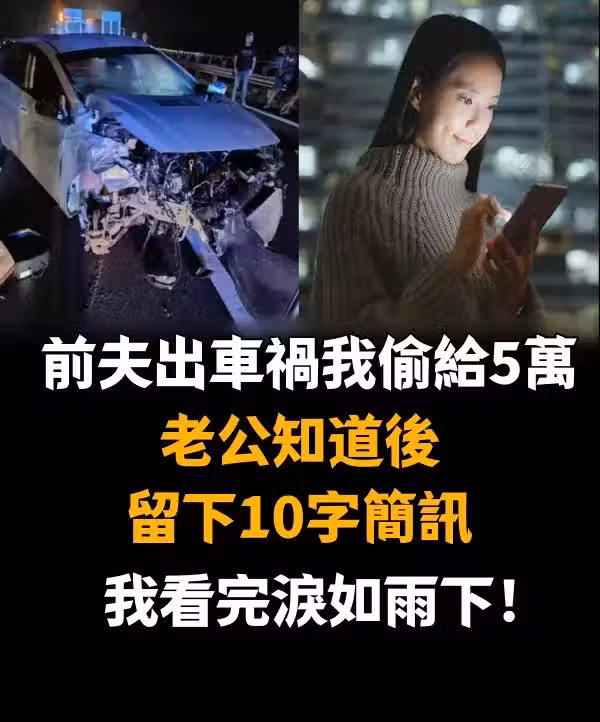 前夫出車禍我偷給5萬,老公知道後留下了10字簡訊,我看完淚如雨下!