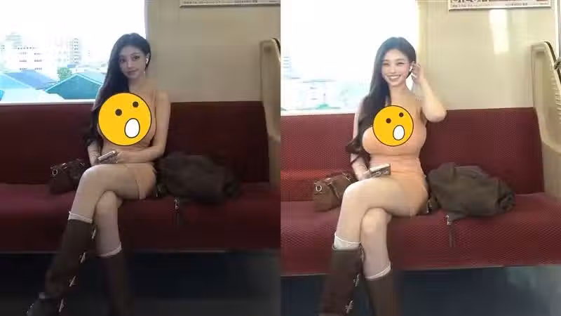 網絡上近來瘋傳一段影片,畫面中,一名長發美女坐在日本電車中,雖然窗外風景超漂亮,但大家都把注意力放在美女身上,原來她穿著緊身連身洋裝,傲人上圍完全包不住,鈕扣快要被撐開,性感模樣讓人想神出女子的真實身份。
