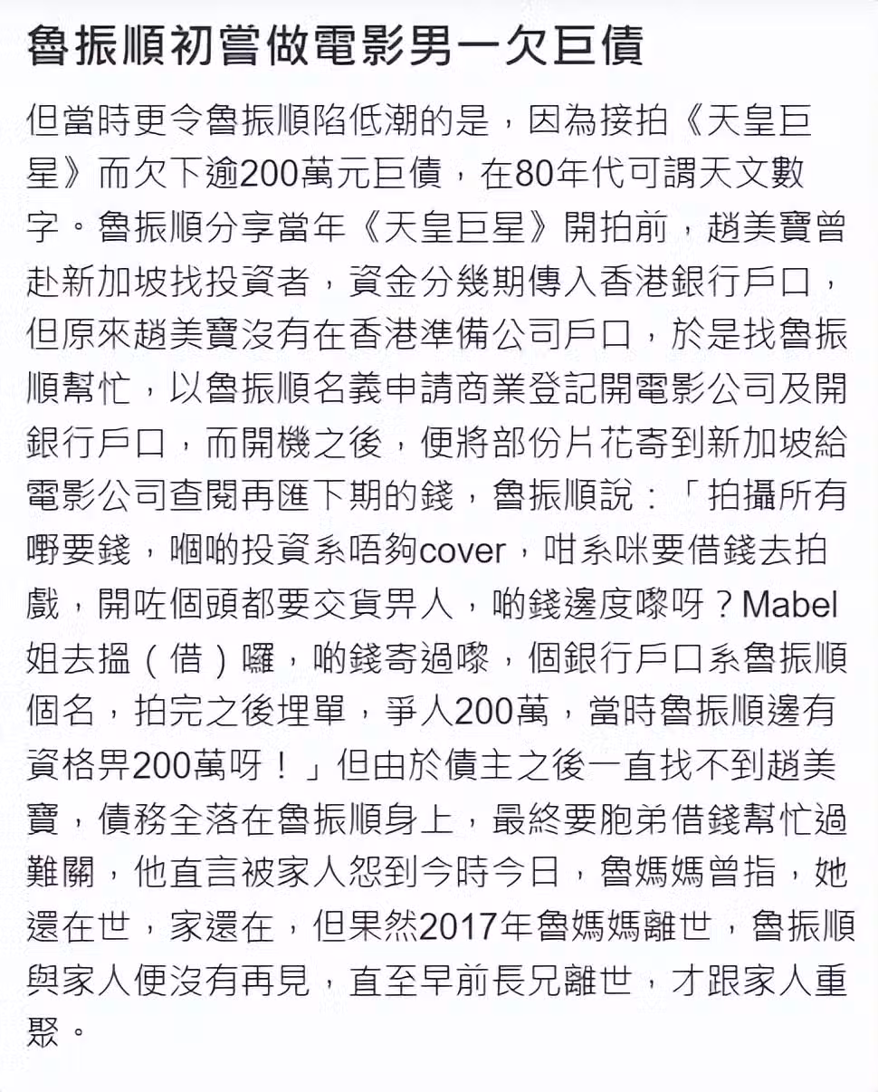 200萬放到今天也不少,更何況是1983年,魯振順根本沒能力償還,最終是弟弟到處借了錢度過難關,因為這件事,家人一直怨恨魯振順,幾十年沒有往來。