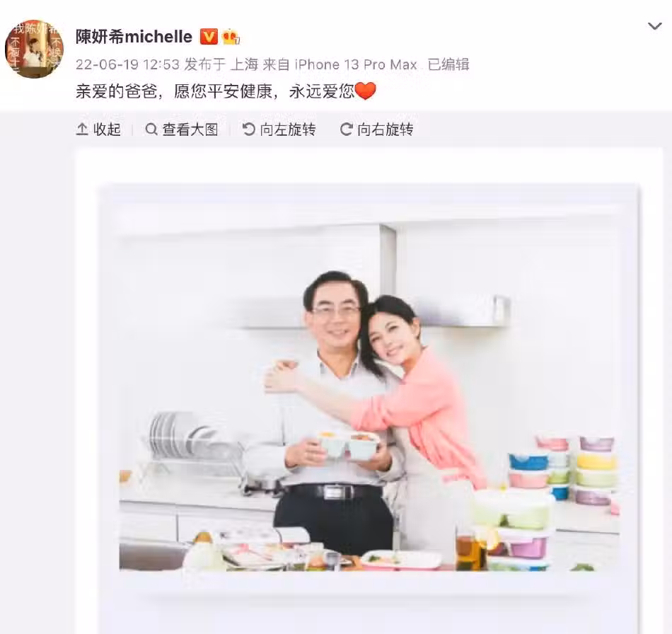 2022年父親節的時候,陳妍希祝福親愛的爸爸平安健康,此時陳爸爸的狀態很好,人也沒有那麼瘦,對比下就會發現,從2022年到2023年這一年,陳爸爸的變化非常大。