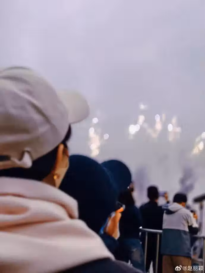趙麗穎罕曬兒子近照,母子倆一起看煙花,5歲想想已經戴眼鏡了