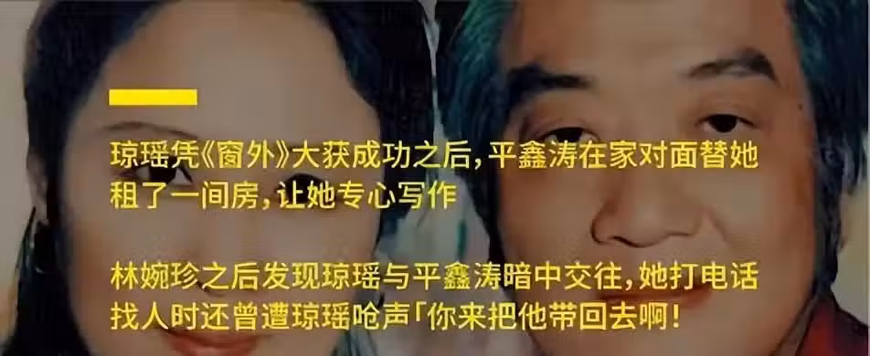 當平鑫濤深夜不見人影,夜不歸宿的時候,林婉珍打電話到瓊瑤家裡找人,瓊瑤則是毫不避諱的說「那你來把他帶回去啊!」