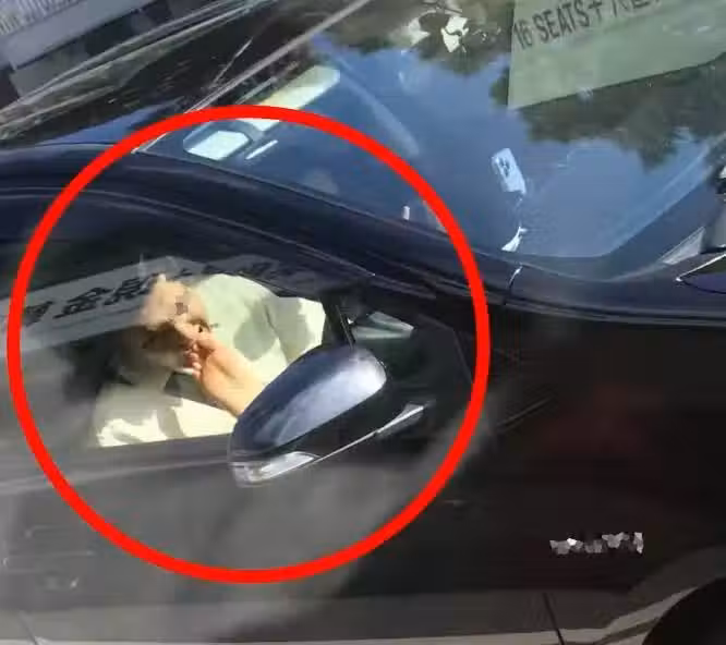 在影片中,男駕駛員一邊開車,一邊低頭去咬副駕駛的腳掌,而副駕駛的女性則毫不在意,仍在專注於手機。