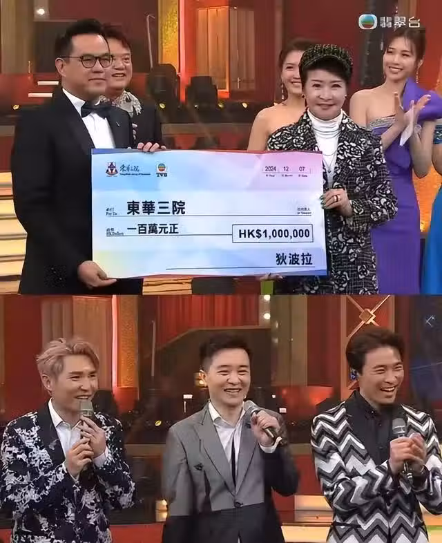 也正因狄波拉的慷慨捐助,令譚輝智幾人的表演環節,籌款一度比汪明荃、薛家燕兩位阿姐還要高。