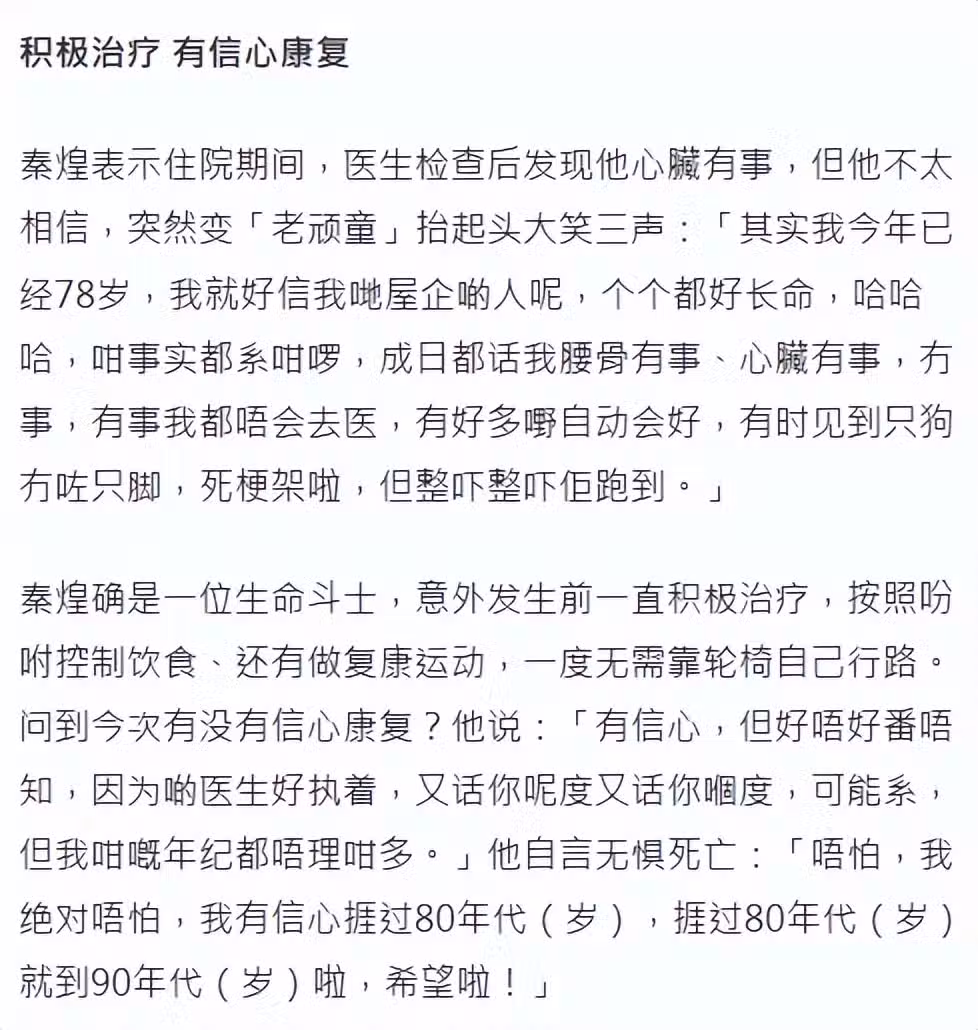 76歲港星在養老院摔得遍體鱗傷,換了4間醫院救治,已看淡生死