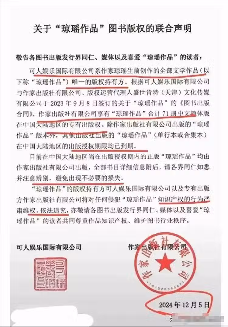 何琇瓊在12月5日的時候,就讓可人娛樂國際公司發布了一則聲明。