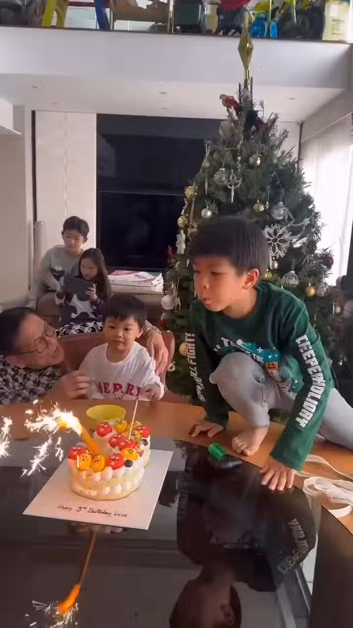 「小春雞」剛開始被噴出的煙花嚇了一跳,立即退後,然後又爬上台近距離代弟弟吹煙花蠟燭,之後他又再次為弟弟點了多次蠟燭,兩兄弟吹蠟燭的互動充滿愛。