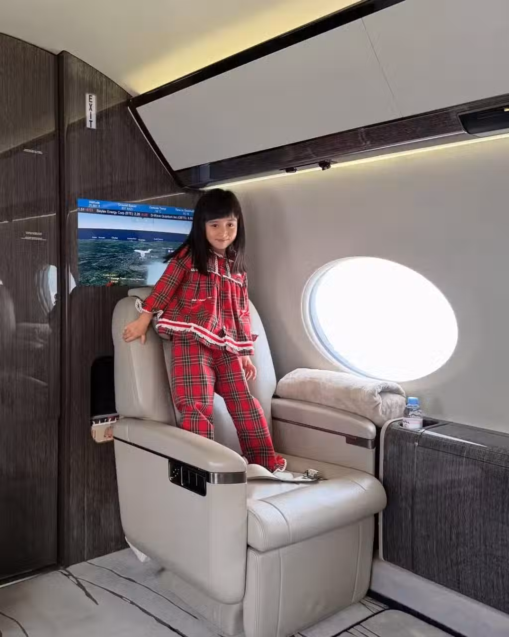陳雪鈴經常在社交交平台分享老公和子女的照片、影片,最近她和家人坐豪華私人飛機外游,盡顯奢華生活,非常貴氣!