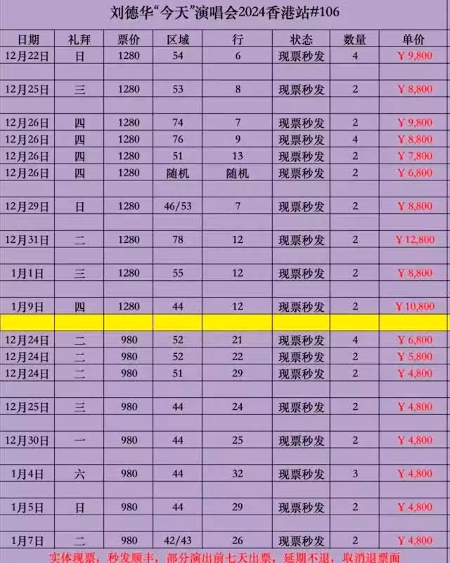 港媒從紅牛手中拿到所謂的價格表,其中12月31日及1月9日的門票,單價都在萬元以上,比原價翻了九到十倍,甚至可以快遞發貨,不用當面交易。