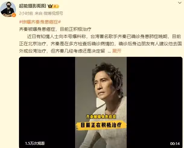 12月24號,八卦媒體突然曝光齊秦患癌的消息,迅速引發熱議。作為兩岸三地知名的歌手,這幾年的時間裡,他一直活躍在大陸,早前還曾在舞台上唱歌,為何會這般突然呢?驚訝程度不亞於之前周海媚去世的消息。
