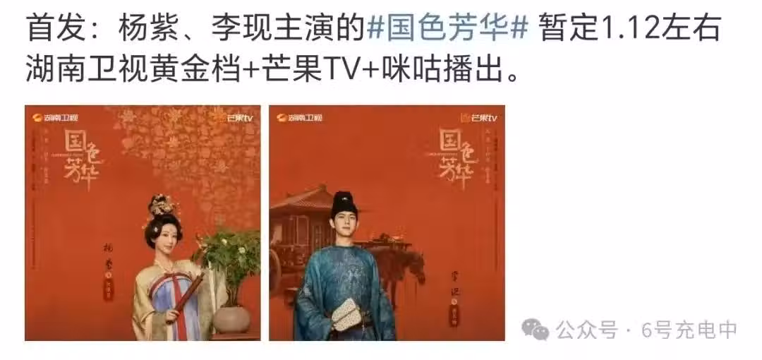 今日,有網友爆出,楊紫李現繼《親愛的,熱愛的》二搭主演的《國色芳華》暫定2025年1月12日左右在湖南衛視黃金檔、芒果TV、咪咕視頻同步播出。