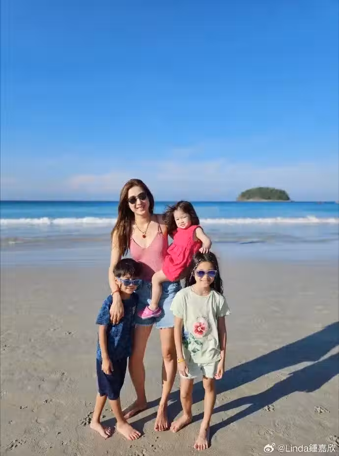 鍾嘉欣平安夜曬全家出遊,單手抱娃臂力超強,三個孩子露臉像爸爸