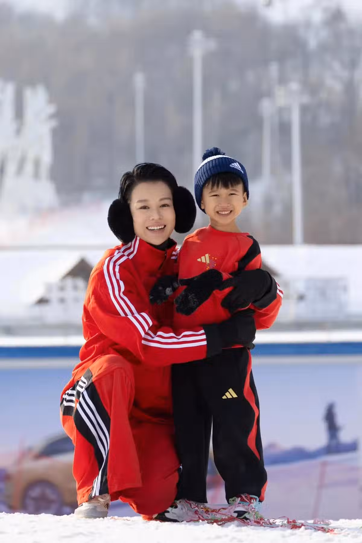 胡杏兒和老公帶三個兒子去吉林滑雪,一家五口在雪地玩耍,好歡樂
